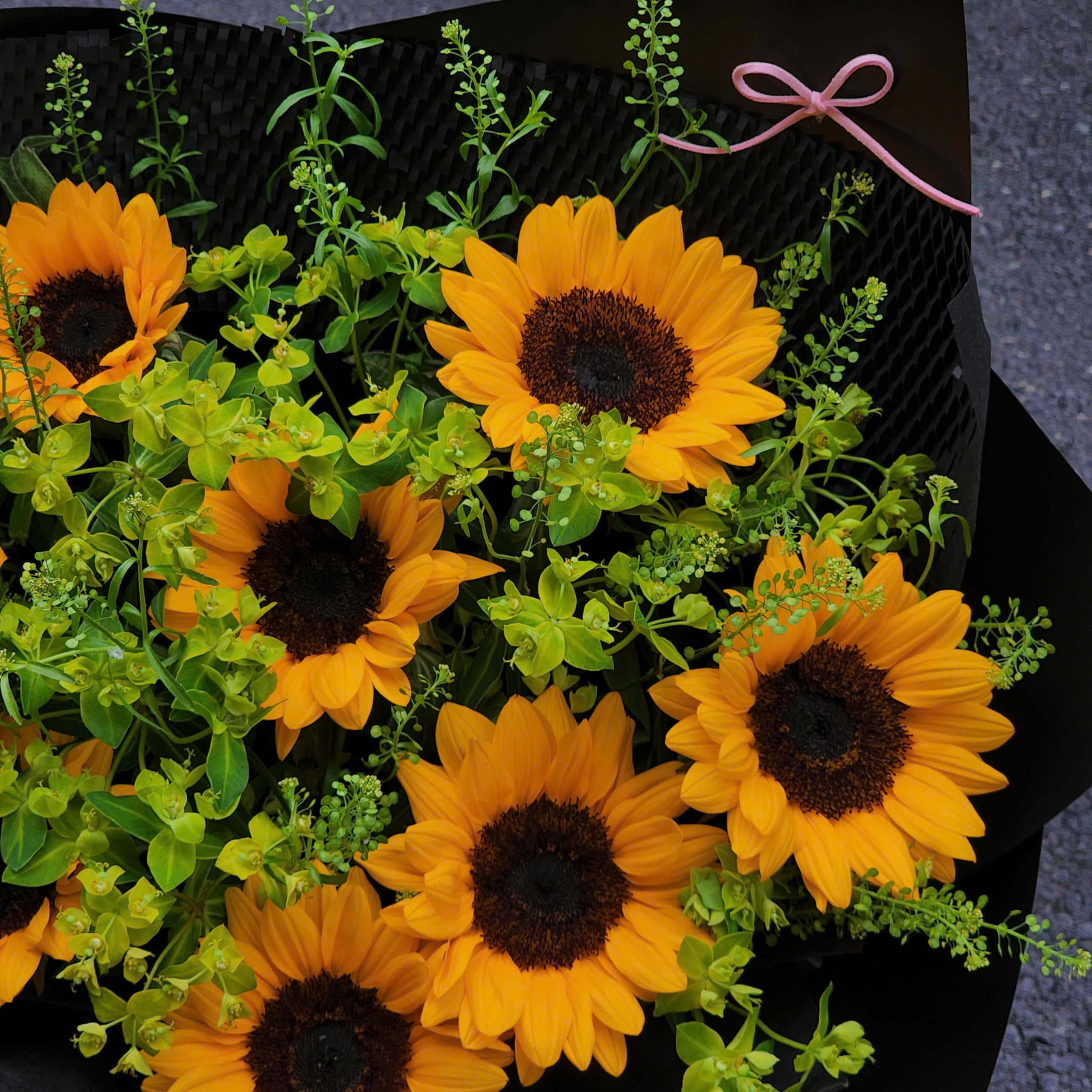 Bó hoa hướng dương mang sắc vàng rực rỡ, tượng trưng cho niềm tin, lạc quan và năng lượng tích cực. Với thiết kế tươi tắn, tinh tế, bó hoa là món quà ý nghĩa để chúc mừng, động viên và gửi gắm những lời chúc tốt đẹp trong nhiều dịp.