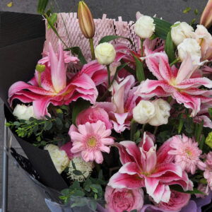 Bó hoa ly được kết từ những bông ly tươi tuyển chọn kỹ lưỡng, nụ hoa mập, cánh dày, màu sắc tươi sáng và độ bền cao. Hoa được xử lý và bảo quản đúng kỹ thuật giúp giữ được độ tươi lâu, nở đều và đẹp theo thời gian. Từng bó hoa được thiết kế hài hòa giữa hoa ly và các loại hoa, lá phụ cao cấp, kết hợp cùng giấy gói sang trọng, tạo nên tổng thể tinh tế, hiện đại nhưng vẫn giữ được nét tự nhiên, mềm mại. Khách hàng có thể lựa chọn nhiều màu sắc hoa ly khác nhau như ly trắng tinh khôi, ly vàng tượng trưng cho sự may mắn, ly hồng thể hiện sự dịu dàng hay ly cam mang ý nghĩa năng động, tích cực.