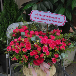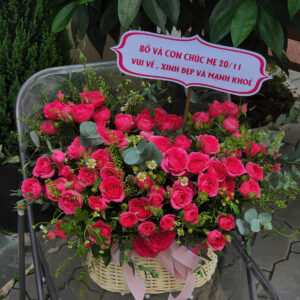 Giỏ hoa hồng đỏ: Biểu tượng của tình yêu nồng cháy, đam mê và sự lãng mạn, rất phù hợp để tặng người yêu, vợ trong các dịp đặc biệt.