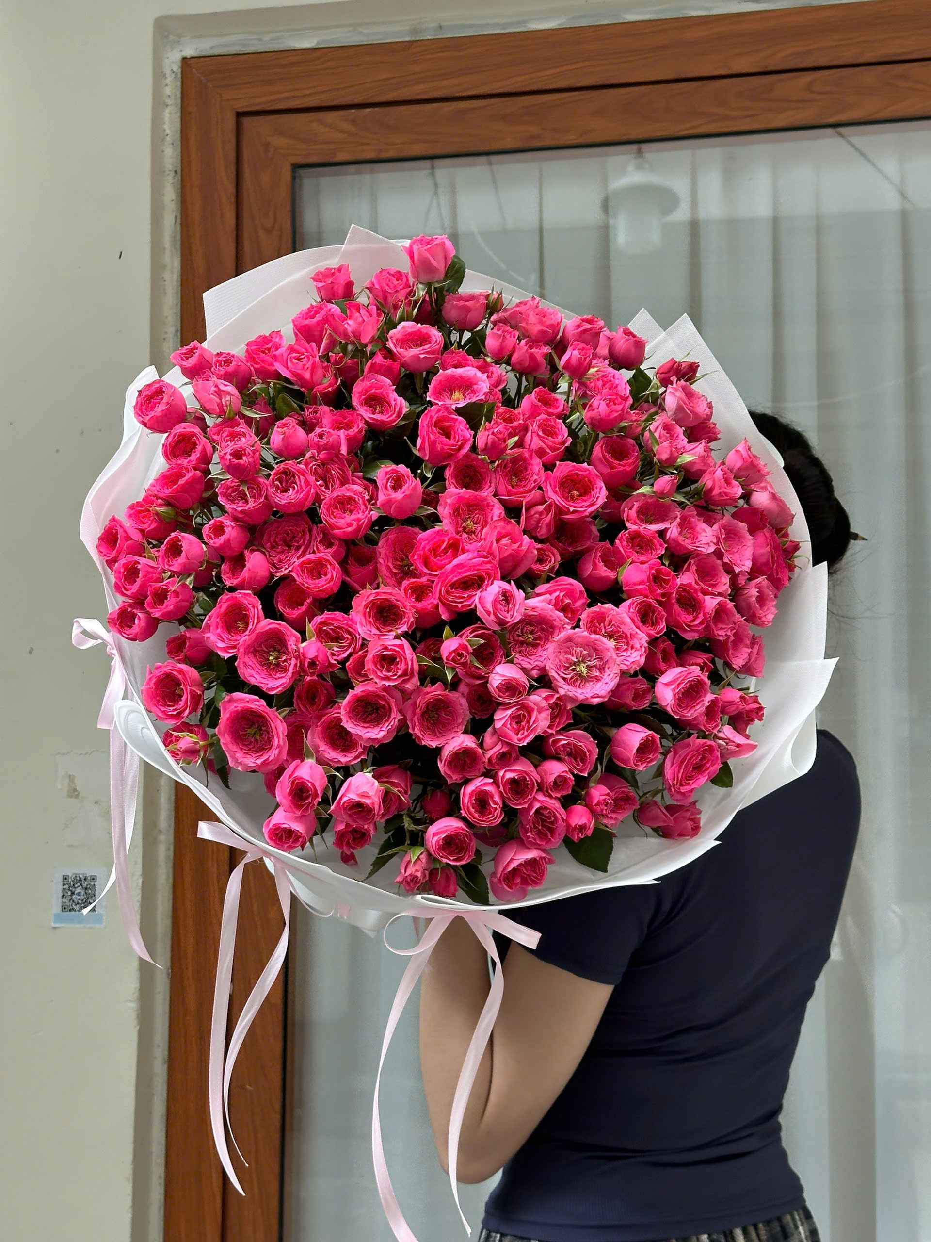 Bó hoa hồng chùm hồng đậm cỡ lớn là lựa chọn hoàn hảo dành cho những ai đang tìm kiếm một món quà thật sự ấn tượng, sang trọng và giàu cảm xúc. Với hàng trăm bông hồng chùm nở đều, sắc hồng đậm rực rỡ, bó hoa không chỉ gây choáng ngợp ngay từ ánh nhìn đầu tiên mà còn truyền tải trọn vẹn thông điệp yêu thương, trân trọng và gắn kết bền lâu.