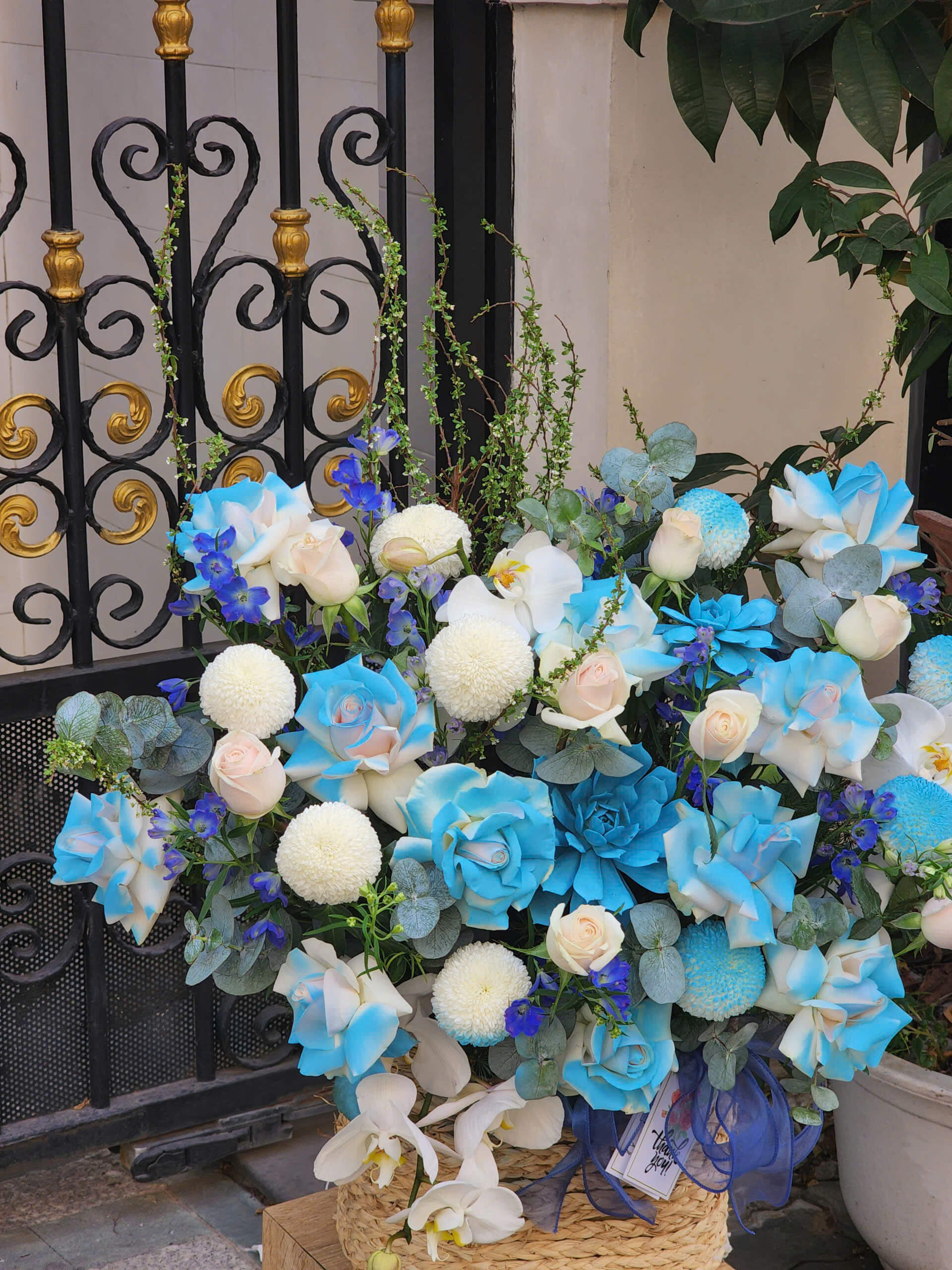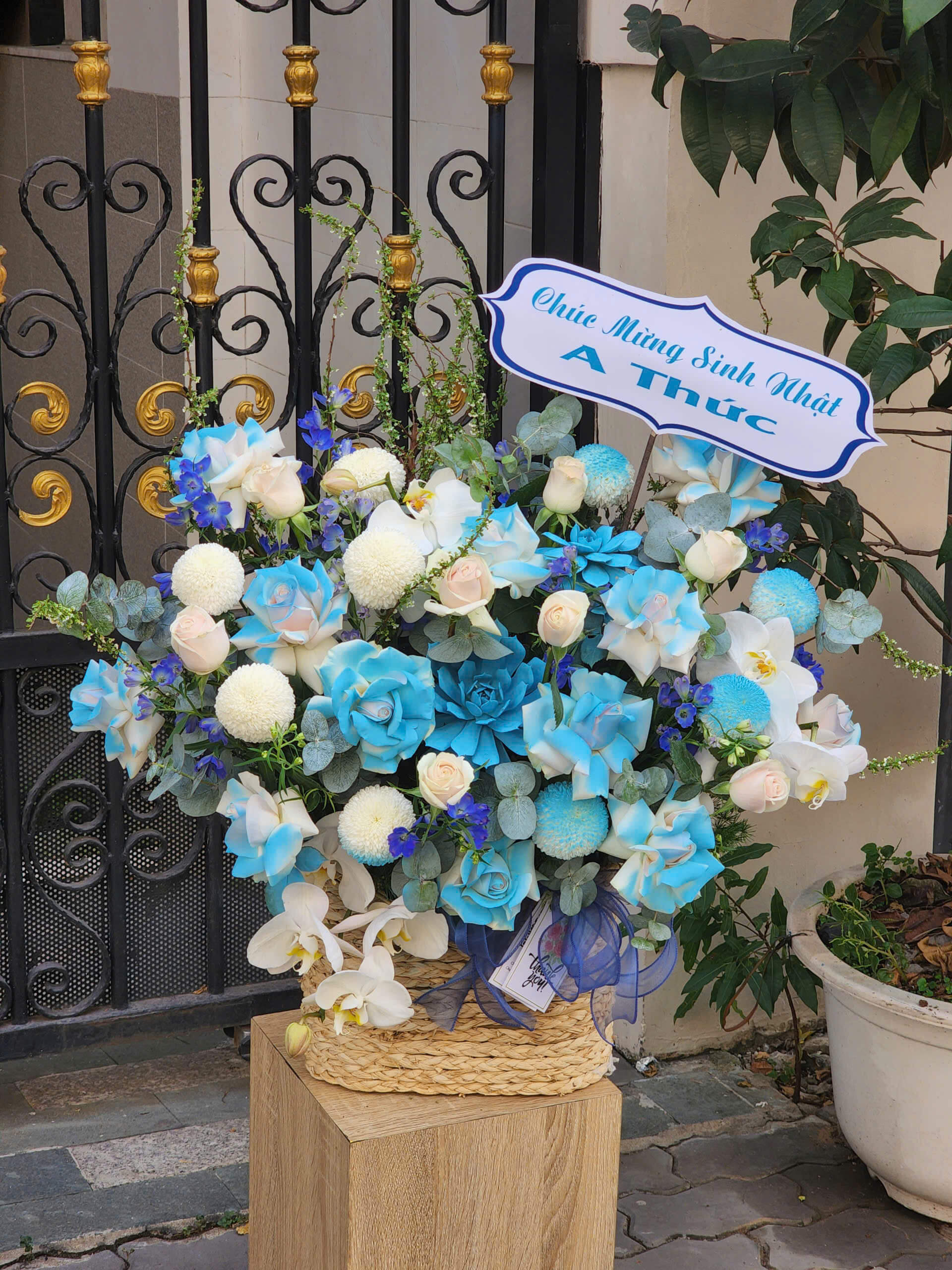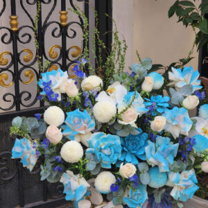 Nâng tầm không gian chúc mừng với mẫu giỏ hoa khai trương xanh dương đầy quyền quý từ Green Flower. Sự kết hợp thượng lưu giữa những nhành Lan Hồ Điệp trắng tinh khôi, nét thanh mảnh của Tuyết Mai và sắc xanh hy vọng từ hoa Delphin, Cúc Ping Pong. Thiết kế mang phong cách hiện đại, biểu trưng cho sự thịnh vượng, may mắn và khởi đầu viên mãn. Đặt ngay tại greenflower.com.vn để sở hữu món quà tinh tế, độc bản, cam kết hoa tươi nhập khẩu, giao hỏa tốc tận nơi kèm banner thiết kế riêng sang trọng cho đối tác.